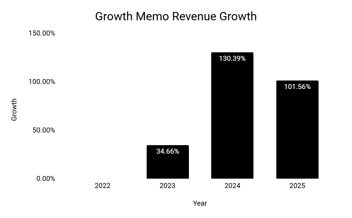 In turn, revenue doubled this year. The Growth Memo makes an average US salary, which humbles me every day.