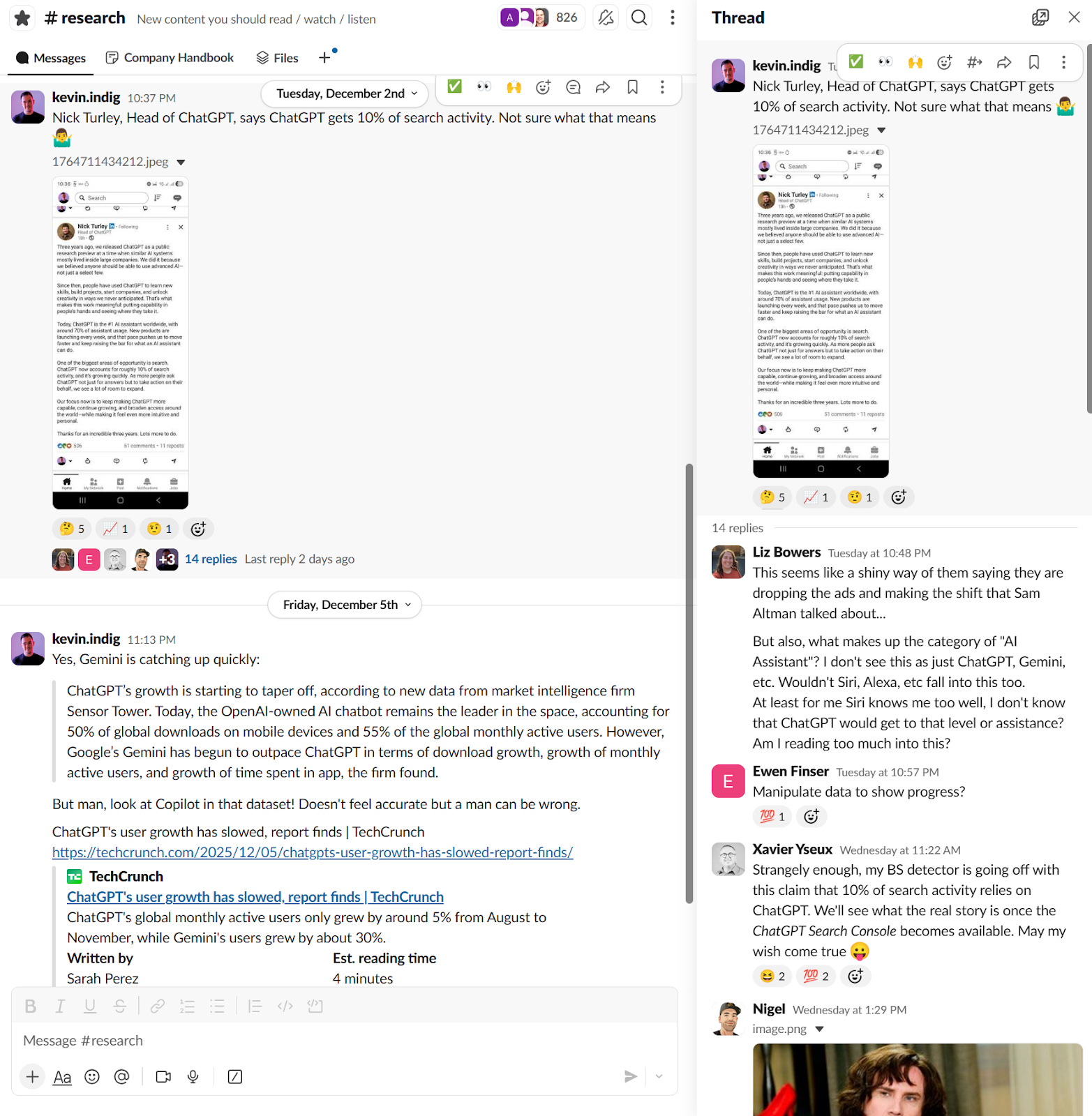 Besides strategic consulting on SEO / AEO, I’m also trying out a new offering where I help clients analyze internal data and turn it into sales narratives, content, and copy. It’s a research function that embeds within clients’ teams to transform internal data into original, citable stories that are designed to establish category authority, crush sales objections with evidence, and drive higher win rates and shorter sales cycles. Should be fun.