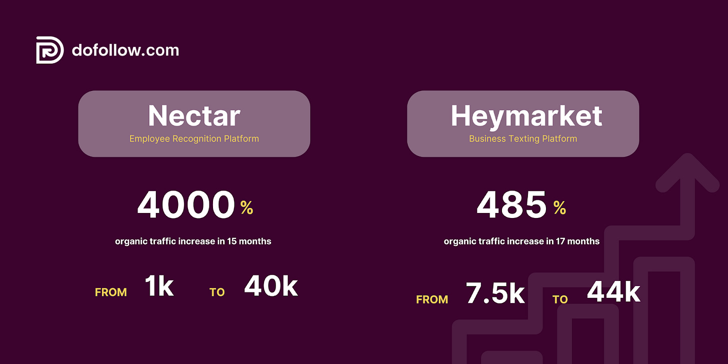 dofollow.com helps B2B SaaS companies increase their site authority so they can rank for those competitive high-intent keywords and bring in more qualified leads.