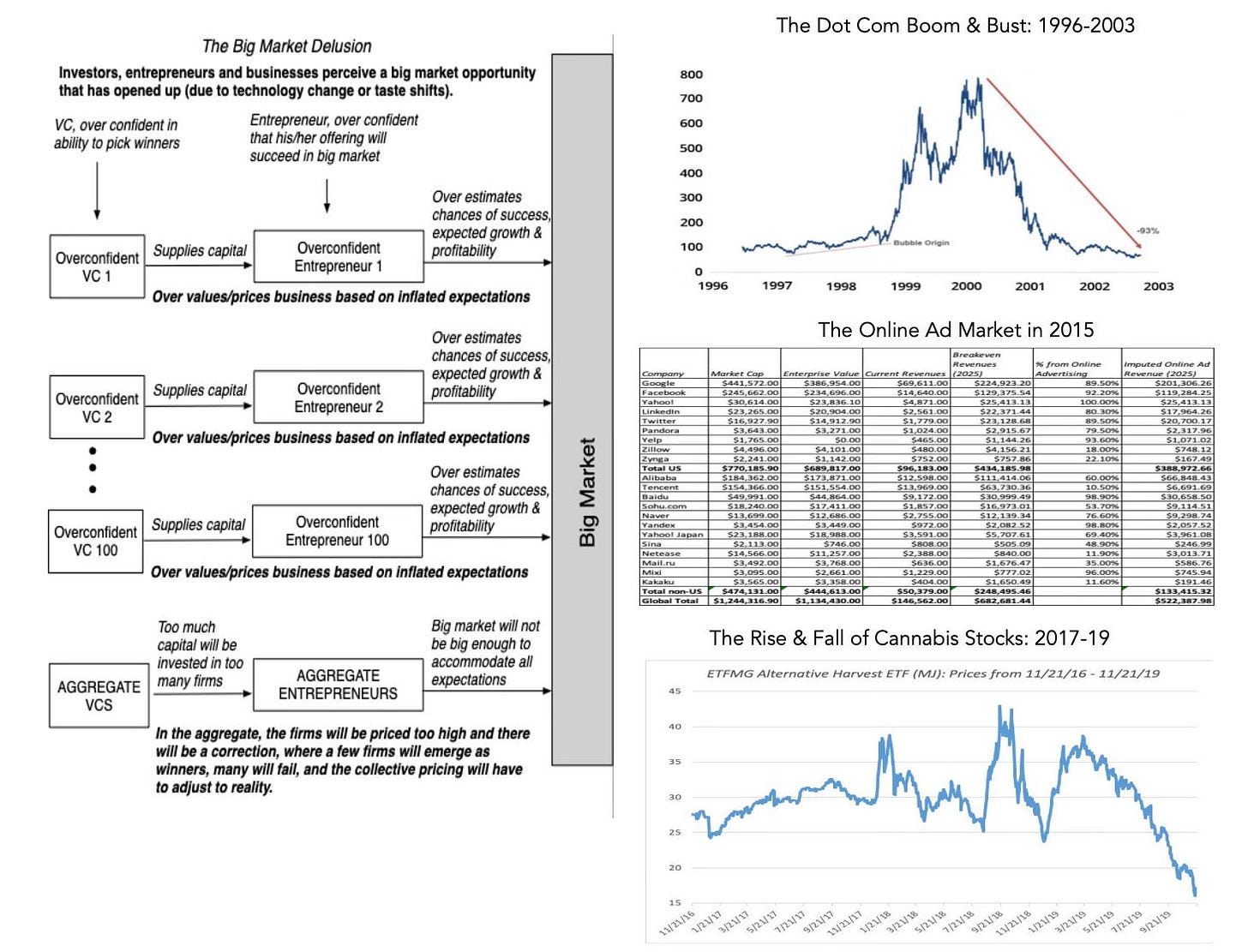 Finally, he warns that investors may be falling prey to a big‑market delusion, where each company’s revenue projections could make sense individually but in aggregate exceed the total size of the AI market.