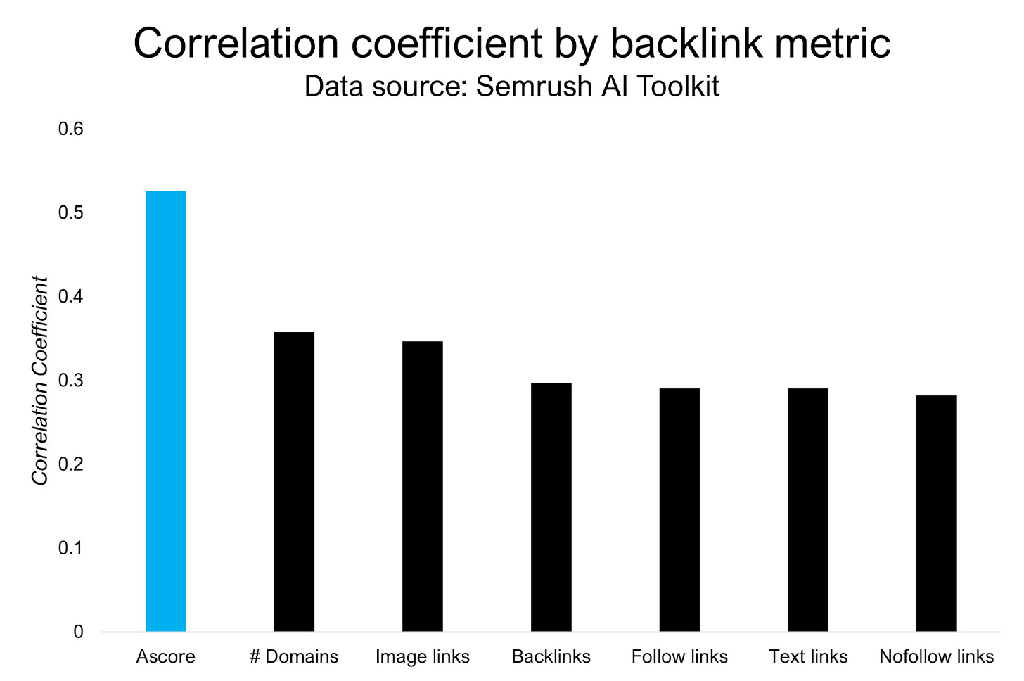 Of course, Ascore is just a proxy for quality. LLMs have their own way of arriving at backlink quality. But the data shows that we can use Semrush’s Ascore as a good representative.
