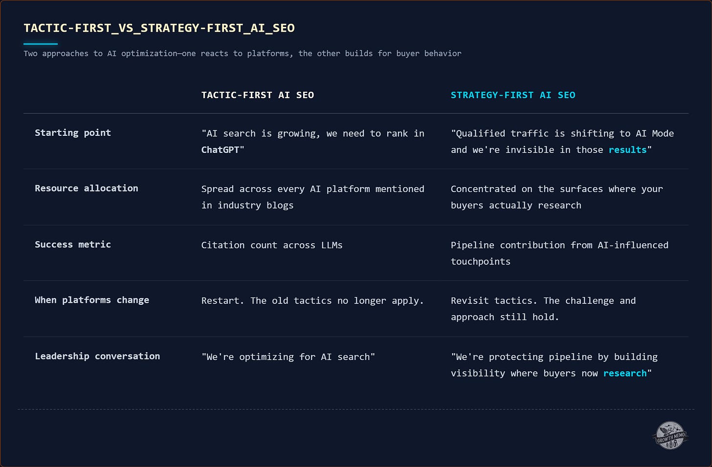 Once your strategy document is set, these past Growth Memo posts cover the execution layer. Each addresses a specific capability your AI SEO approach will need.