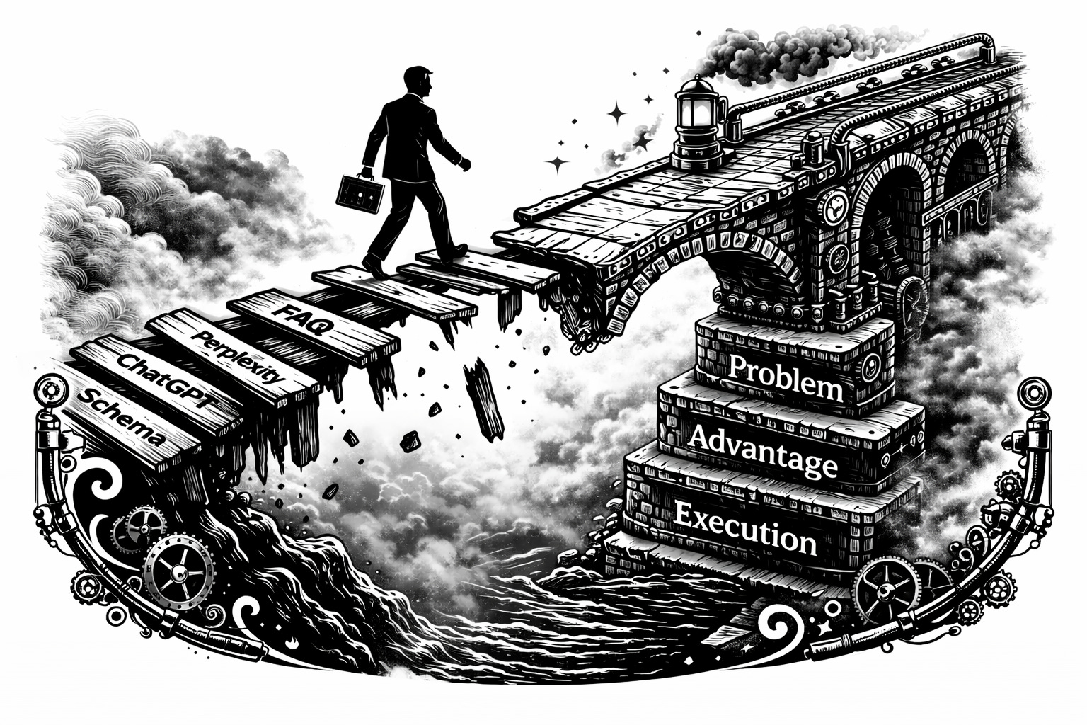 Most AEO “strategies” are tactic lists dressed up as long-term direction. They often break the first time a platform changes or leadership asks questions. A real AI SEO strategy starts with the business problem, builds on your brand’s unique advantages, and lets tactics come last.