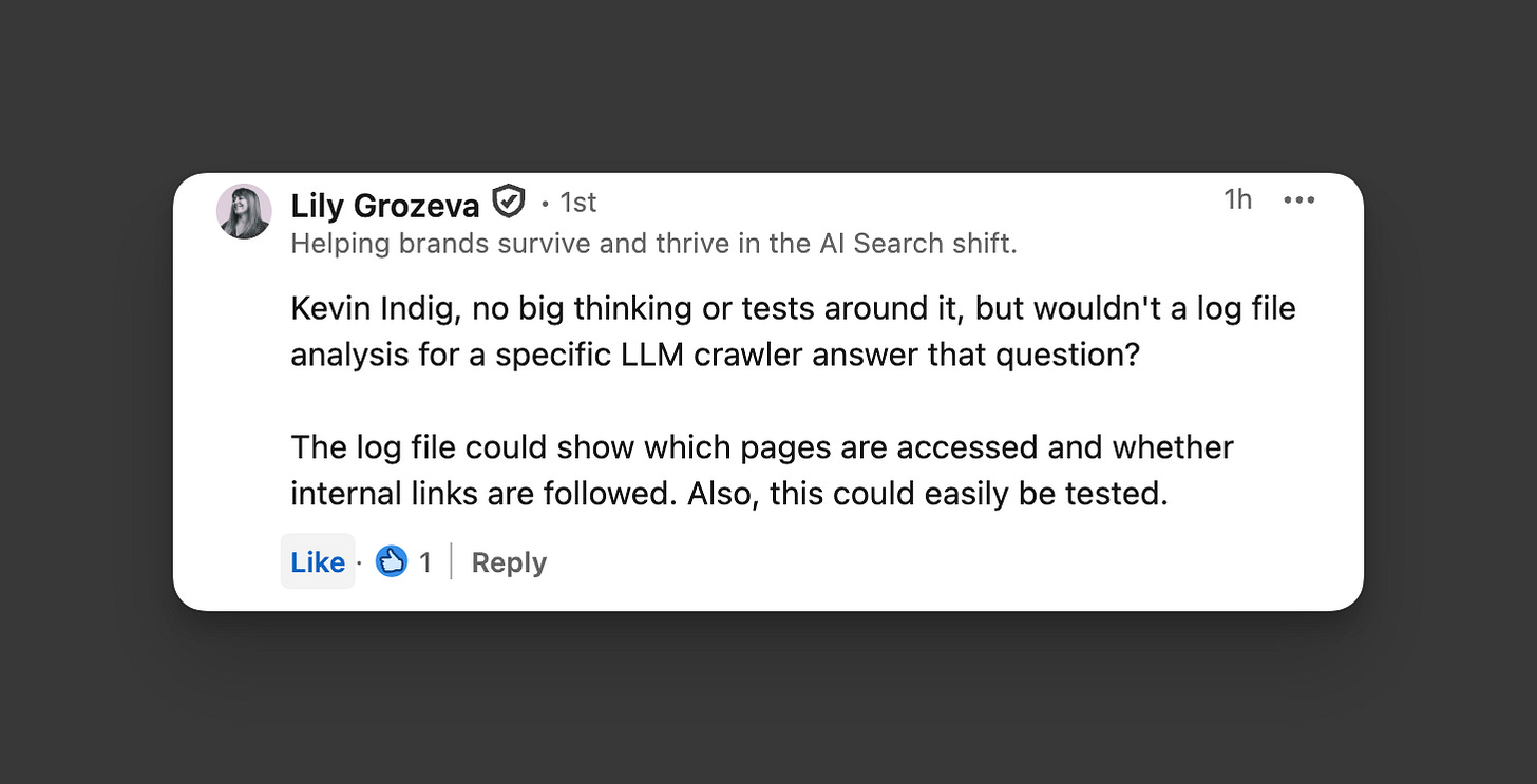 Lily Grozeva, Head of SEO at Verto Digital, rightfully called out that we can all get the answer in our own logfiles.