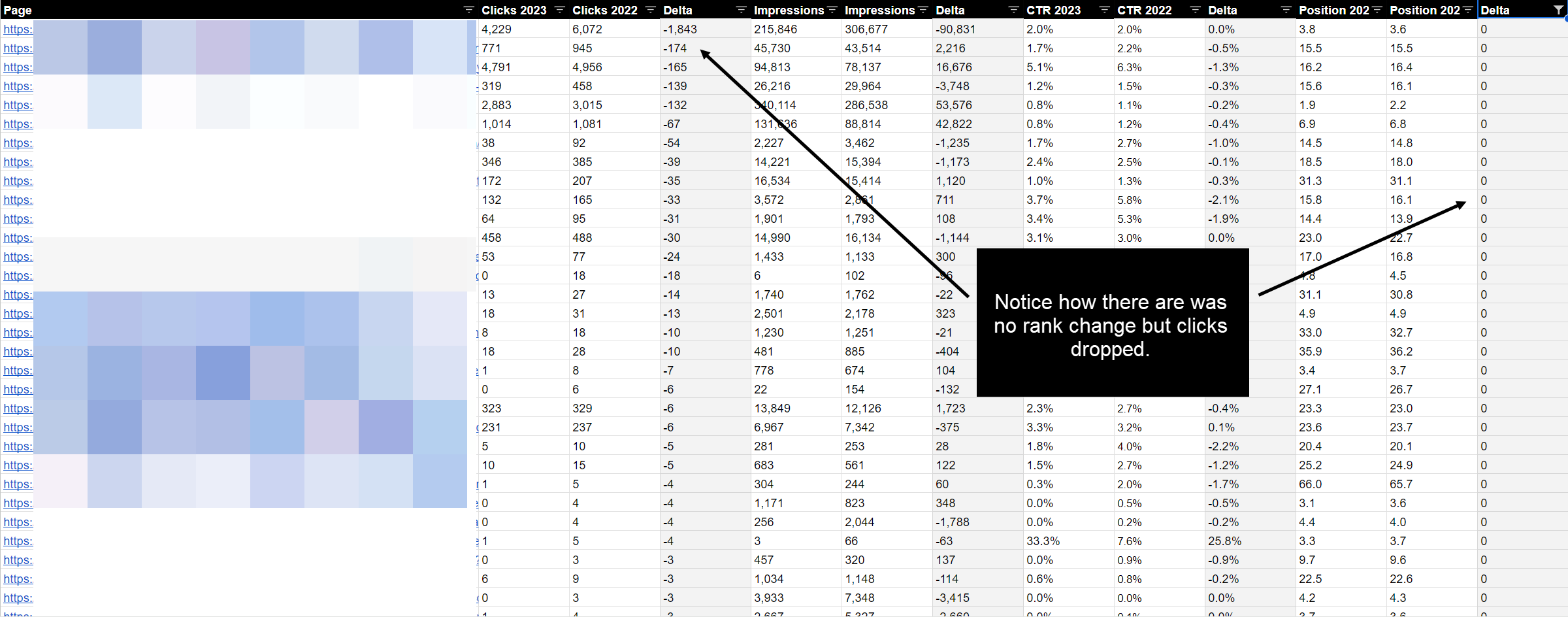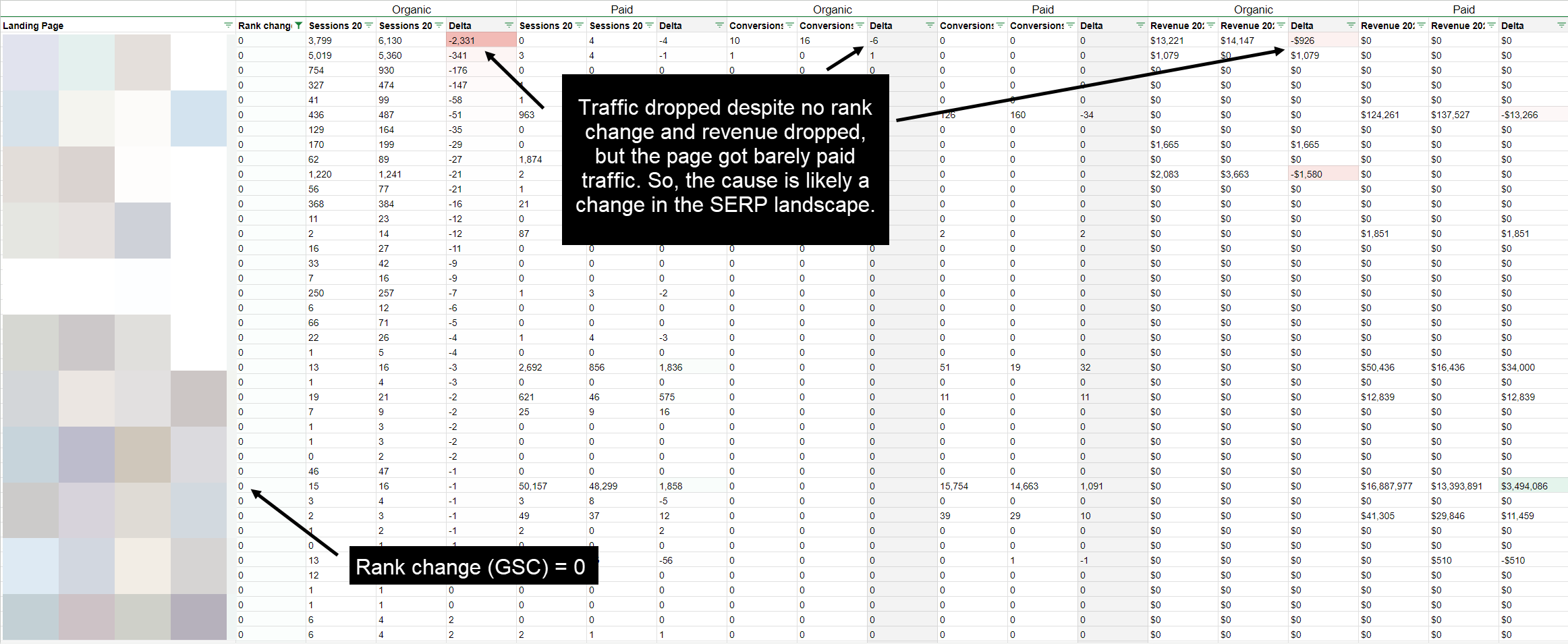 Just GSC data itself is already helpful to understand where you lost traffic without losing ranks.