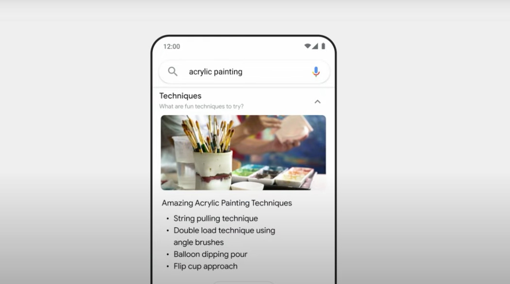 On mobile devices, knowledge panels already take up the space right after ads. I expect TTK to take up even more space. The mobile SERP for “acrylic painting”, which is used as an example by Google for the new TTK feature, is actually a good showcase of how low classic organic results appear.