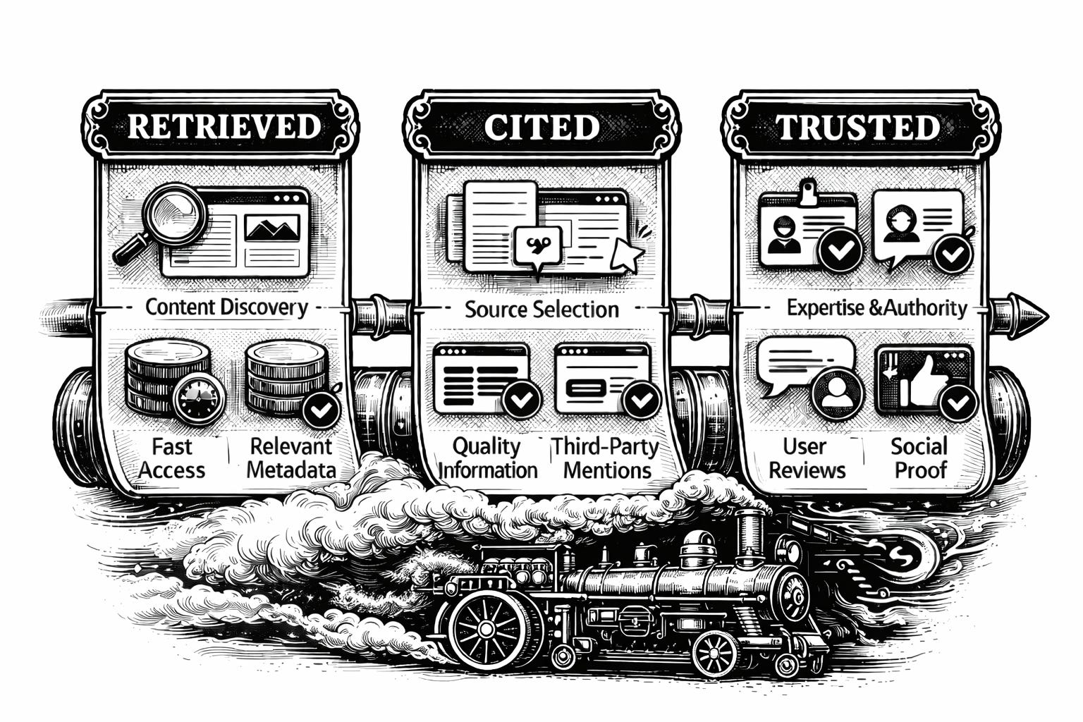Retrieved → cited → trusted