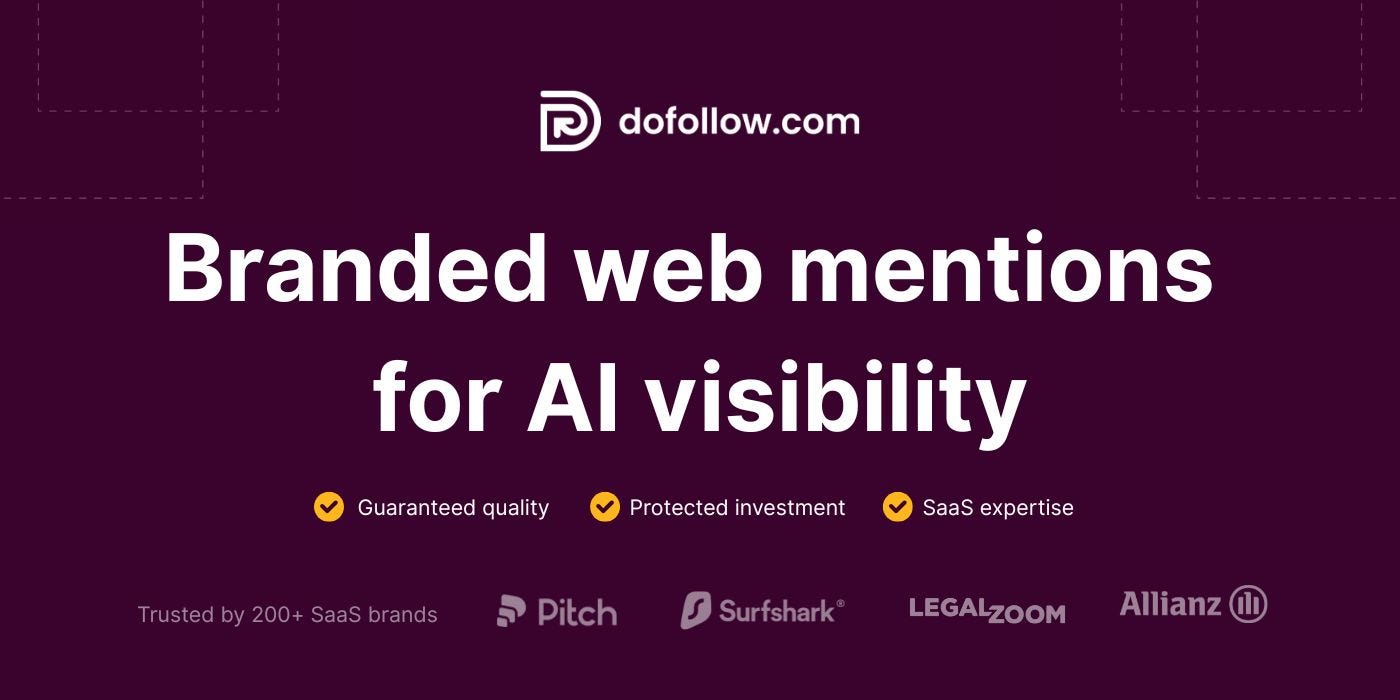A new service from dofollow.com that earns authoritative, contextual brand mentions on real SaaS + industry publications — so you show up more often in AI-generated recommendations and comparisons.