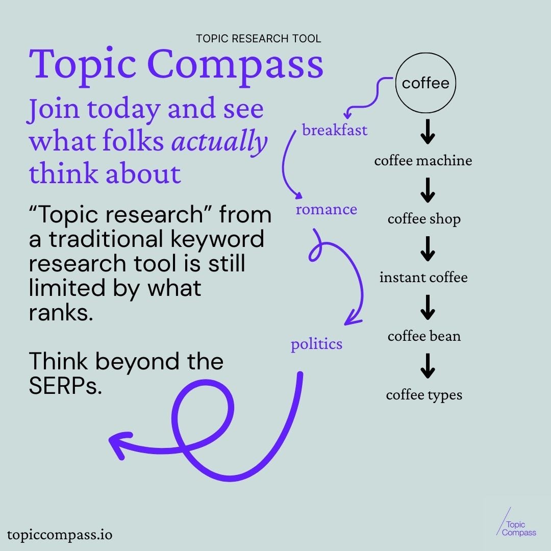 Topic Compass maps what your audience associates with any topic using semantic analysis, so you can uncover adjacent concepts and plan content that builds topical authority.
