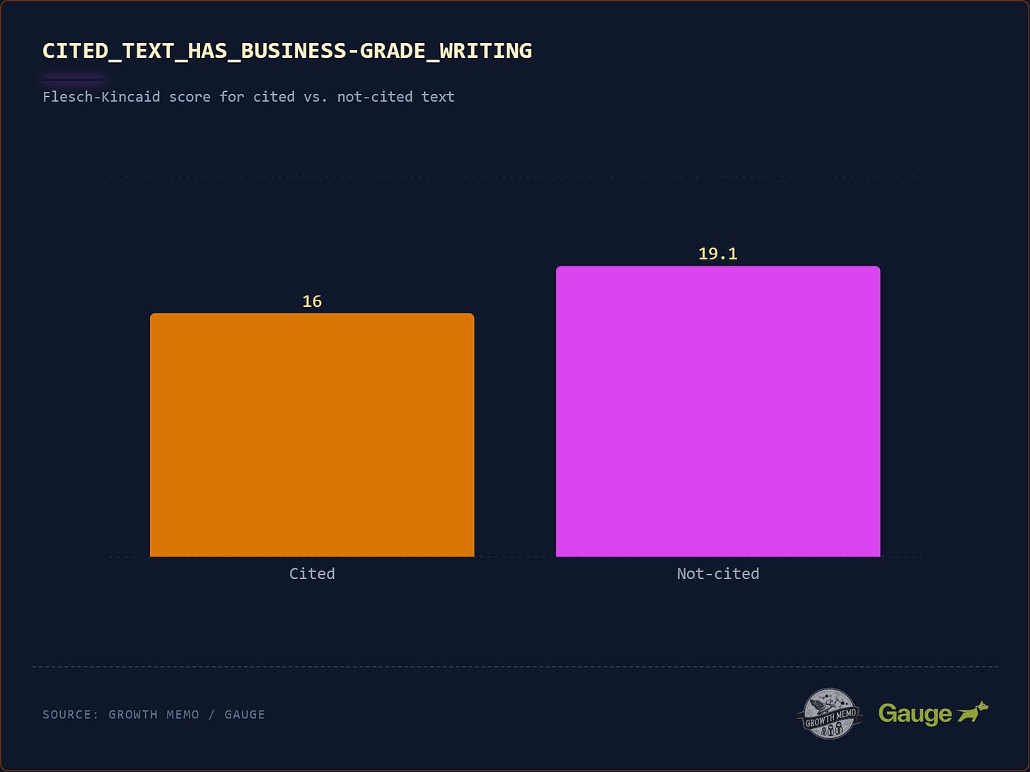 The data shows that this style of writing is not ideal for AI visibility.